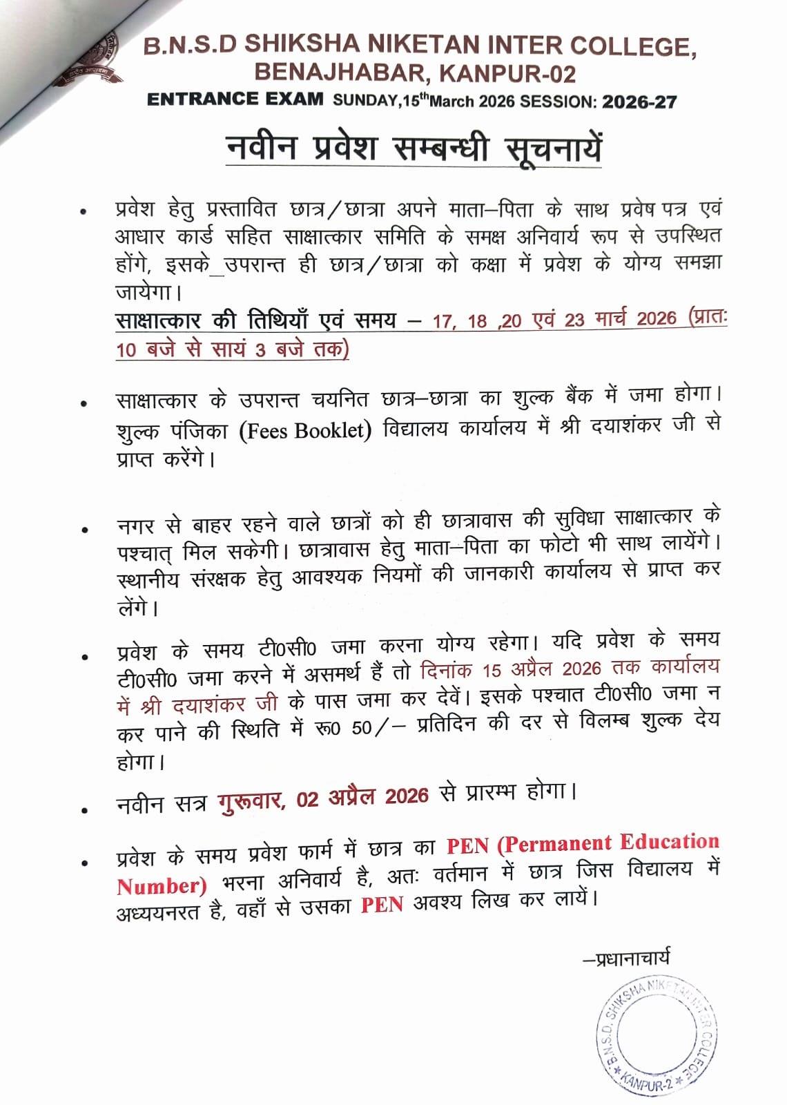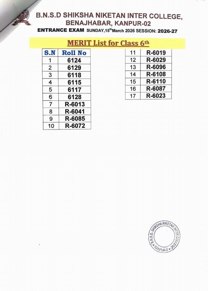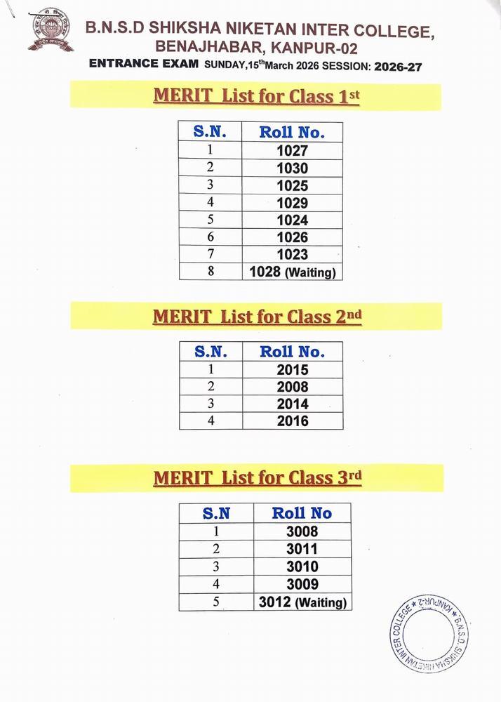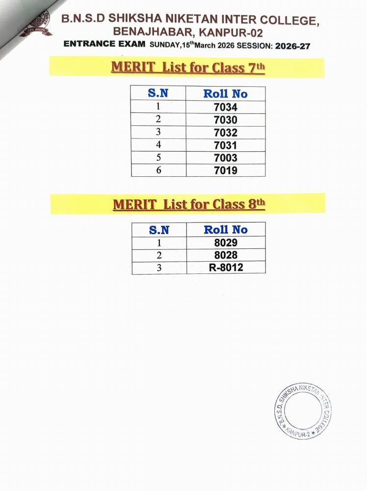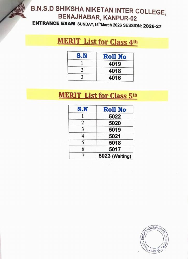 ENTRANCE EXAM RESULT 2026
