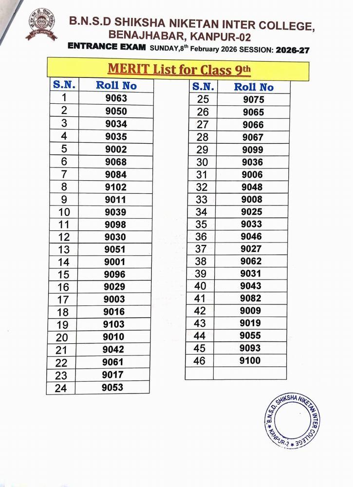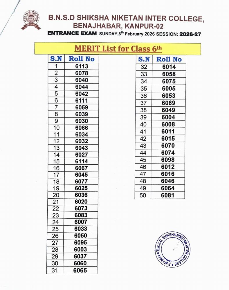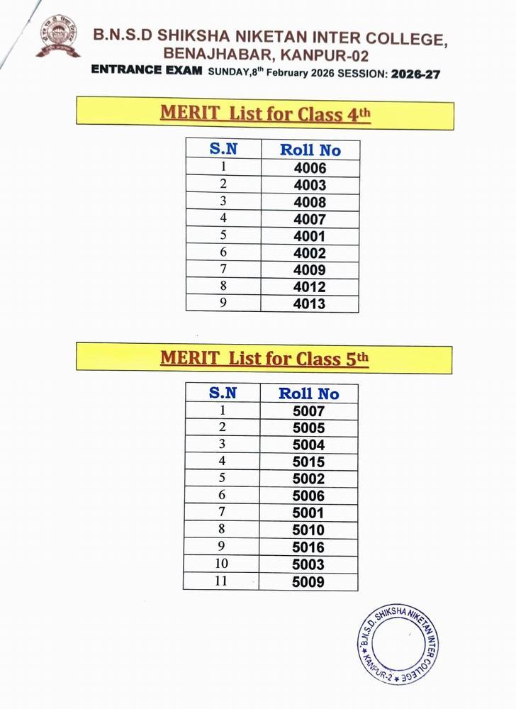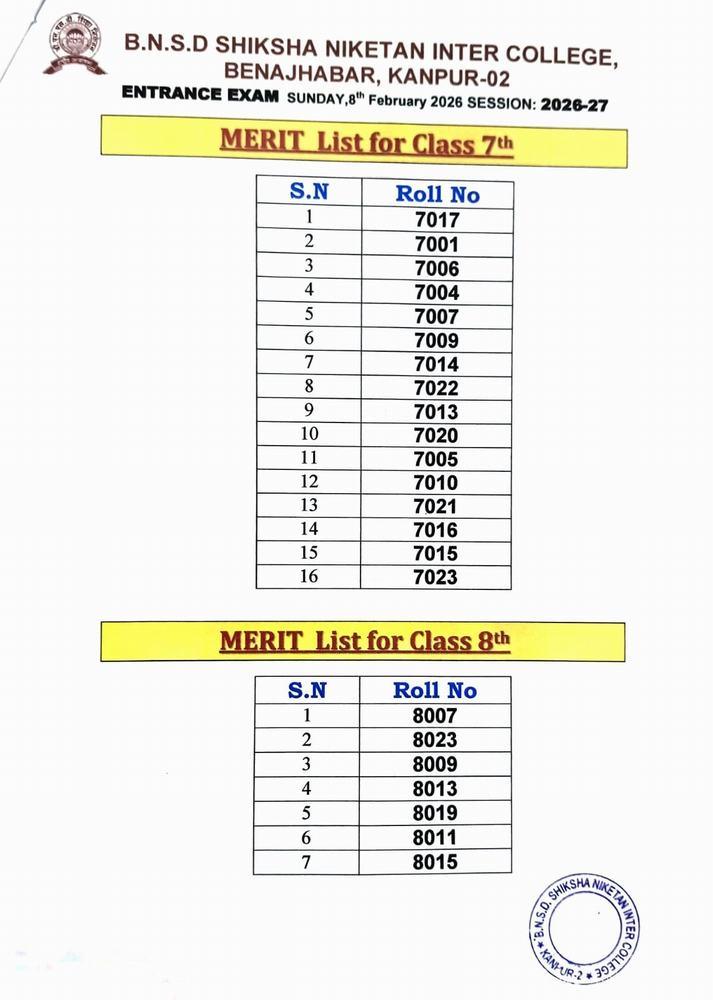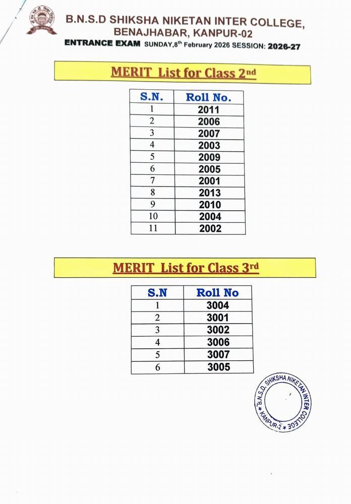 ENTRANCE EXAM RESULT 2026